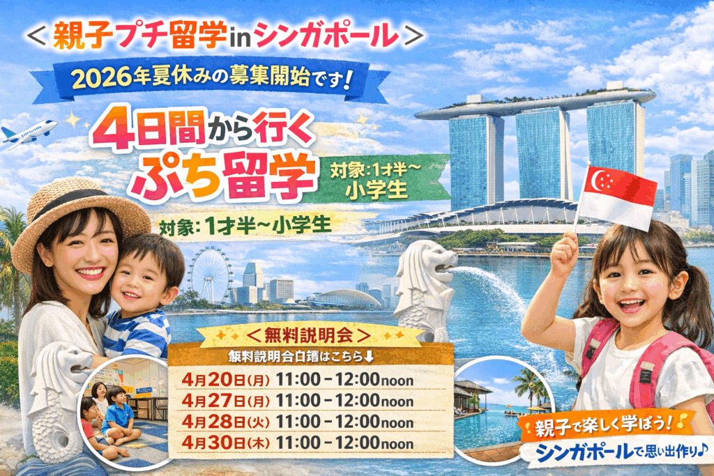 エンジョイ・グローバルのご提供する「親子でプチ留学inシンガポール」では、